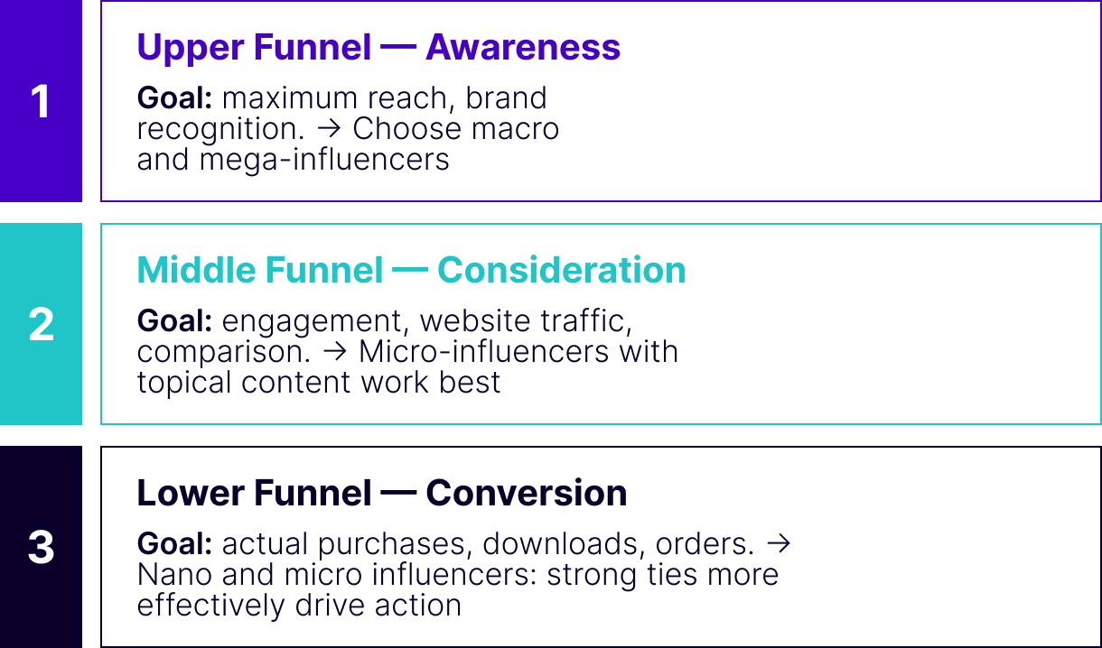 Understanding how to work with influencers effectively starts with matching the creator type to your funnel stage: