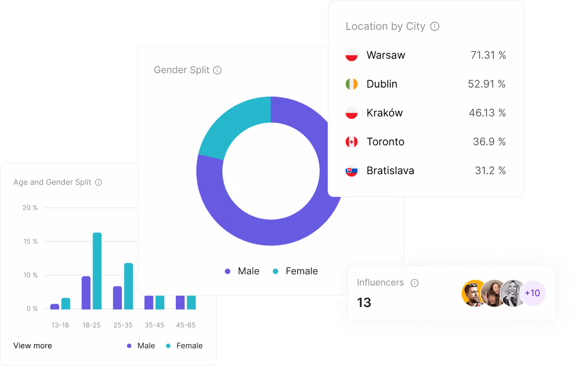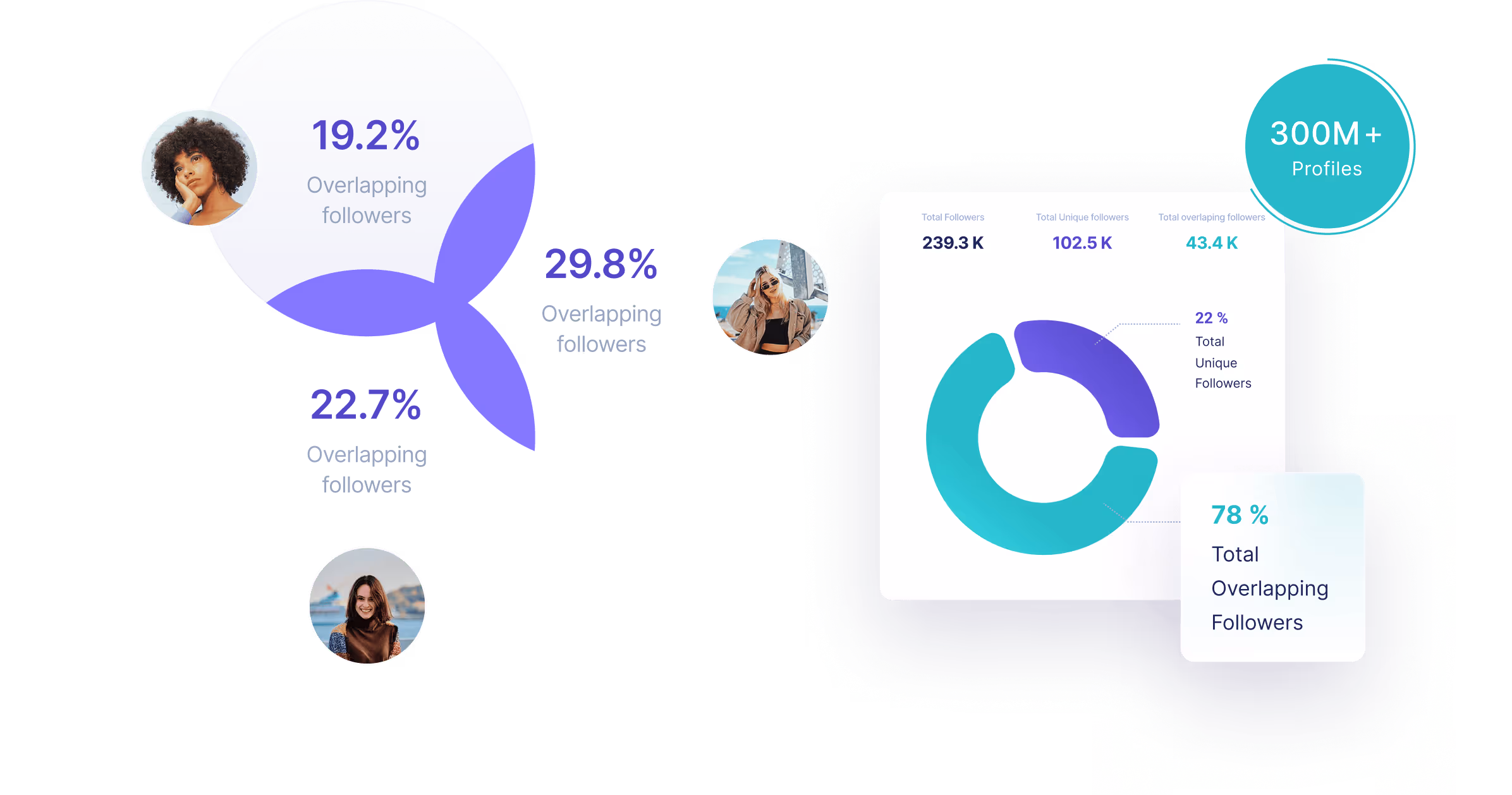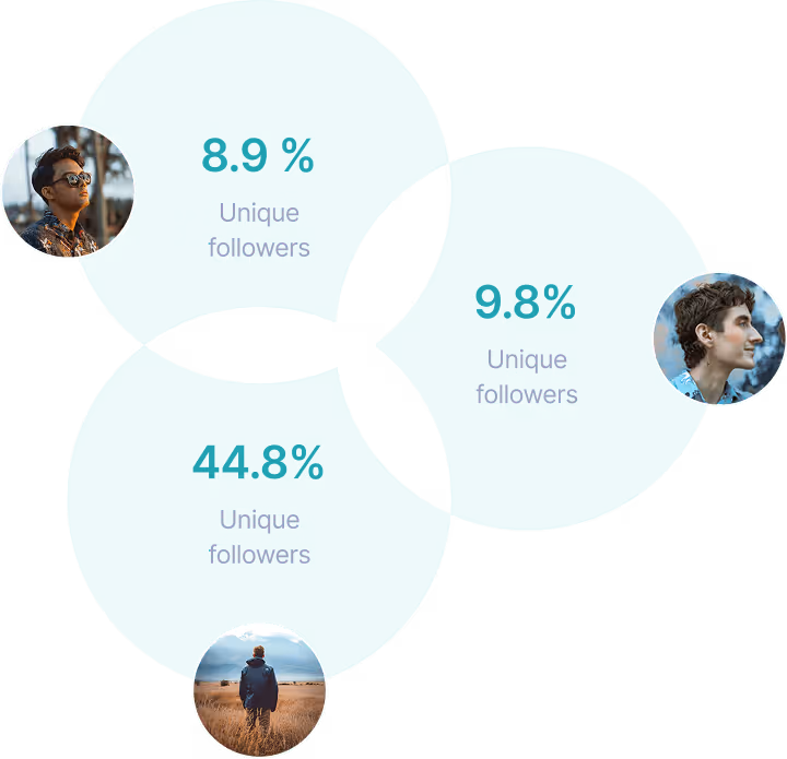 Plan smarter with overlap and exclusivity insights. Trendin shows shared audiences, unique segments and redundant pairings, so you spend budget on incremental reach, not duplicate followers.